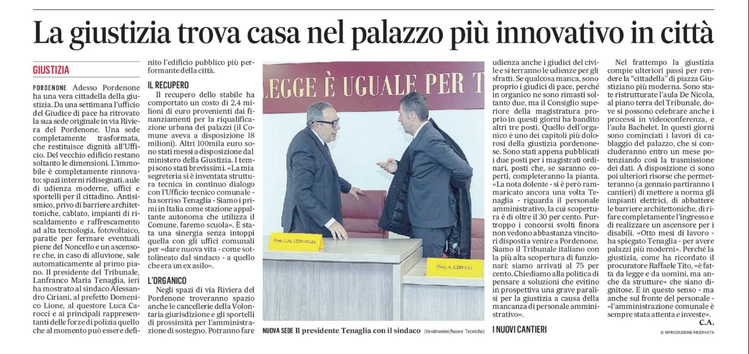 23/12/2022 - Nuova dislocazione Uffici giudiziari - Messaggero Veneto